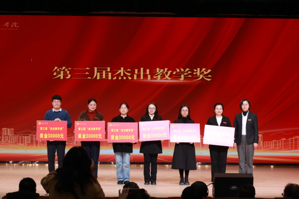 图为亓小林校助为第三届杰出教学奖代表颁奖 摄影:芮雨欣