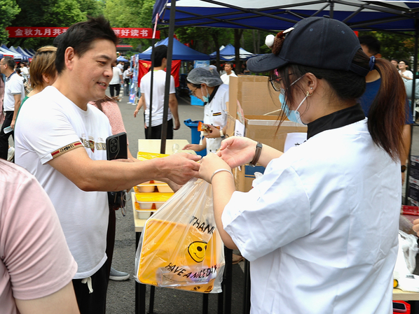 图为新生家长领取“食堂体验餐” 摄影:芮雨欣