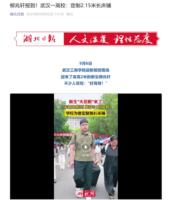 柳兆轩高兴地说:“学校的安排很细致、暖心,为我这样身高、体重特殊的学生解决了实际困难。来之前我特别担心床的问题,听辅导员说了后十分开心。有了特制的床,以后晚上能好好休息了。这让我觉得学校很有人情味。”他对于即将开始的大学生活充满期待,希望能够学好专业知识,将来成为对社会有用的人。