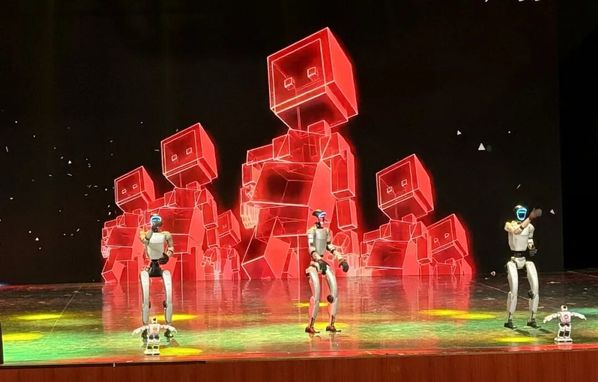 长飞公司与武汉鼎盛创新公司带来的机器人科技互动表演将气氛推向高潮。智能机器人随着音乐节奏灵活舞动,与主持人轻松互动,展现出人工智能技术的炫酷与神奇。