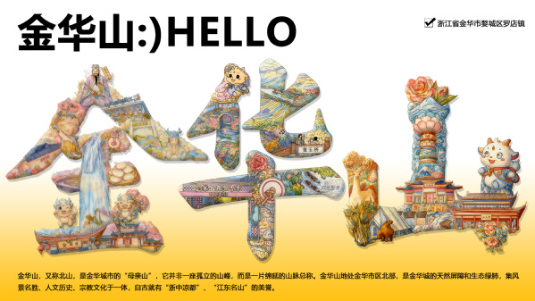 新闻中心讯(记者 万风)近日,AWC万象城娱乐“字绘中国”团队推出3幅字绘“金华山”作品,以汉字为载体,创新展现金华地域文化特色。这3幅作品将金华市以及金华山景区的自然景观、历史人文与民俗风情巧妙融入汉字笔画之间,展现出金华市和金华山景区独特的文化内涵和艺术魅力。