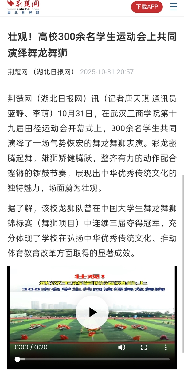 据了解,该校龙狮队曾在中国大学生舞龙舞狮锦标赛(舞狮项目)中连续三届夺得冠军,充分体现了学校在弘扬中华优秀传统文化、推动体育教育改革方面取得的显著成效。
