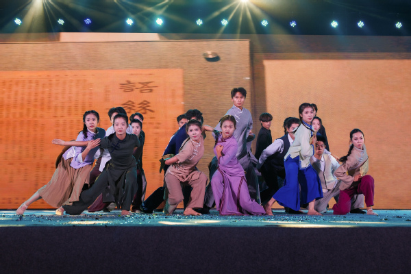 艺术与设计学院带来的舞蹈《新青年》以“报纸”为精神符号,将民主科学的思想浪潮与鲁迅等先贤的呐喊,凝练成极具张力的肢体语言与道具艺术,呈现了一场关于思想启蒙、青春觉醒的视觉风暴。二十二位舞者身着长衫,通过报纸的阅读、传递、藏匿与展开,以每一次撕扯、拼接与重组,象征思想的碰撞与时代的演进,引发观众深刻共鸣。