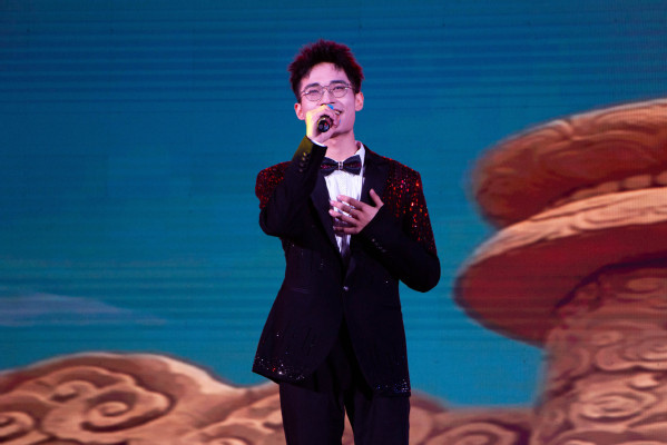 由大学生艺术团11位同学联袂献演的《盛世国乐》,以乐舞交融的形式,点燃了全场观众的民族自豪感。8位乐手默契配合,古筝行云流水,笛声清越悠扬,中国鼓击打出雷霆万钧的节奏,与现代键盘巧妙融合;3位身着华服的舞者随乐声翩跹而至,以舒展的肢体和飘逸的水袖,将无形的旋律化为可视的优美画卷。这不仅是一场演奏,更是一次传统与潮流的精彩对话,展现了当代青年以青春诠释国粹的无限魅力。