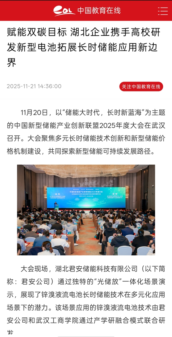 “我们的技术不仅服务于城市能源转型,更是乡村振兴的科技抓手。”孙西河介绍。即使在偏远地区,锌溴液流电池也可与分布式光伏结合,构建“微电网”,解决无电、缺电问题,推动清洁能源的普惠化。
