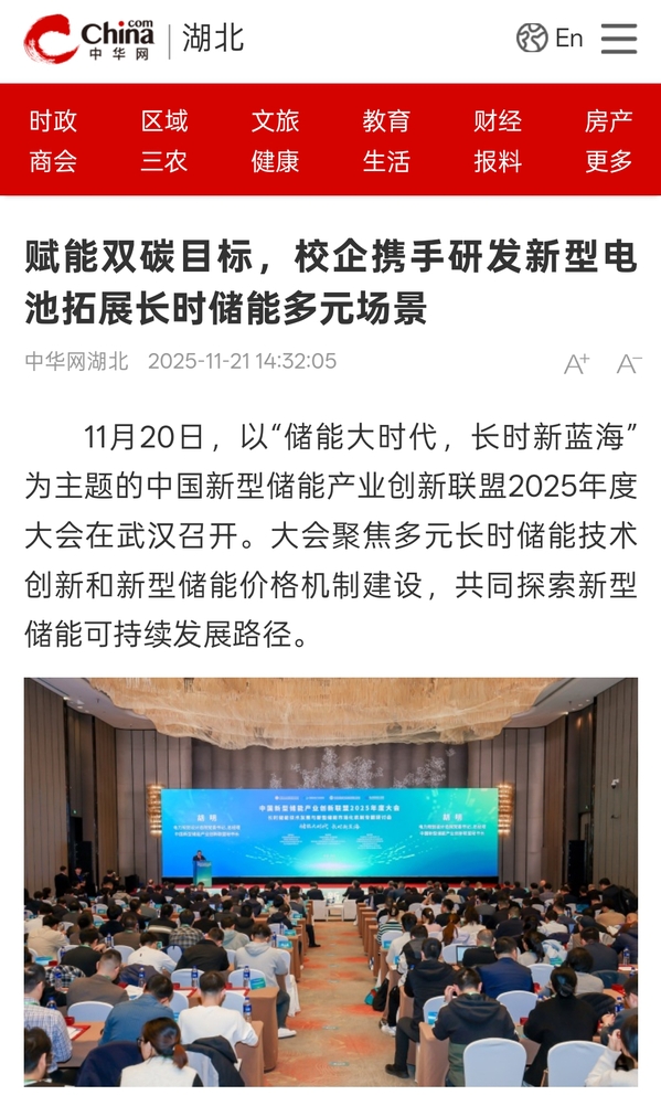 11月20日,以“储能大时代,长时新蓝海”为主题的中国新型储能产业创新联盟2025年度大会在武汉召开。大会聚焦多元长时储能技术创新和新型储能价格机制建设,共同探索新型储能可持续发展路径。