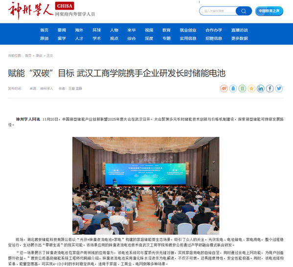 神州学人网讯 11月20日,中国新型储能产业创新联盟2025年度大会在武汉召开。大会聚焦多元长时储能技术创新与价格机制建设,探索新型储能可持续发展路径。