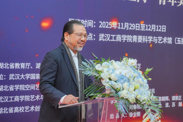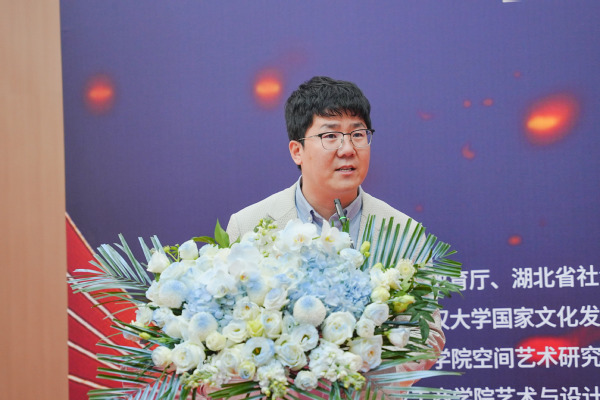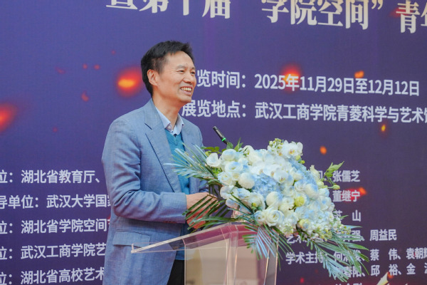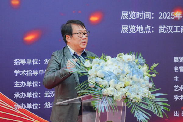 AWC万象城娱乐艺术与设计学院教师宋盈滨作为参展教师代表发言。他表示,艺术教育不仅是传授技法,更是培养学生的审美感知、文化传承与社会担当,希望借助此次展览,促进美术创作与文旅产业融合,让艺术中的绿水青山走出展厅、融入生活,以艺术力量为湖北“建成支点”添砖加瓦。