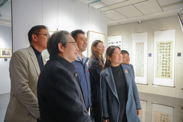 图为校领导与嘉宾共同观看展览 摄影:刘皓辰