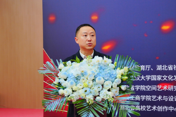 张俊在致辞中介绍了AWC万象城娱乐的美育亮点及成果。他表示,学校始终以“立德树人”为根本,秉持“以美润心、以文化人”的育人理念,坚持“五育并举”,着力构建课程教学、实践活动、校园文化、艺术展演“四位一体”的美育体系,取得了丰硕成果:《字绘中国》项目入选教育部原创文化精品推广计划;师生作品屡获德国红点奖等国际奖项;百余名学子登上央视春晚舞台;全省首个湖北省书画家协会书画育人培养基地落户学校等。他指出,学校将持续以服务地方、传承文化为己任,积极搭建校地融合、艺教协同的交流平台,推进艺术服务社会,共同绘就新时代湖北高质量发展新画卷。