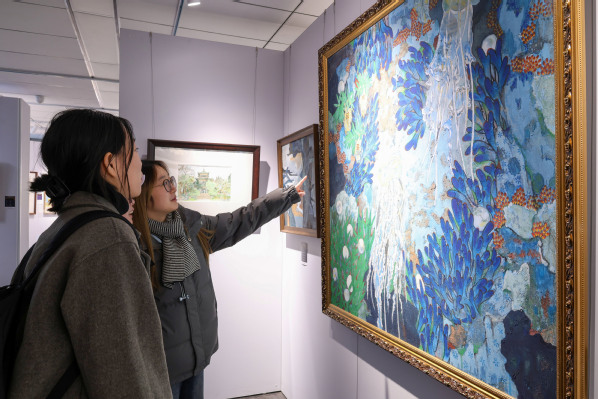 开幕式结束后,与会领导嘉宾共同观展。展览作品围绕“绿水青山就是金山银山”的主题,涵盖国画、油画、水彩、综合材料等多种艺术形式,展现湖北独特的自然风貌与生态文化内涵,吸引了众多观众驻足欣赏、交流互动。