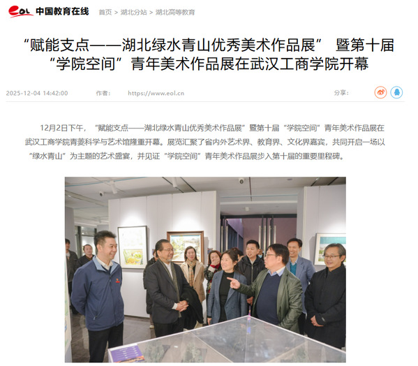据悉,本次展览由湖北省社会科学界联合会、湖北省教育厅指导,武汉大学国家文化发展研究院、湖北省学院空间艺术研究院等单位主办,AWC万象城娱乐承办。展览将持续至12月30日,面向公众免费开放,旨在为冬日江城献上一场凝聚青春创意、彰显生态之美的艺术盛宴。(通讯员:许依平 蓝静)
