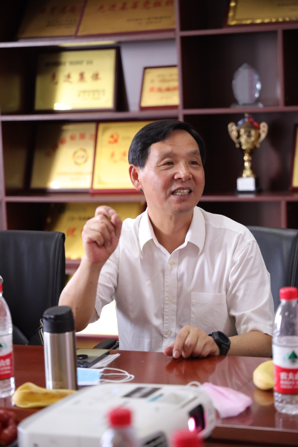图为张金隆教授在座谈会上与教师交流 摄影:张誉东