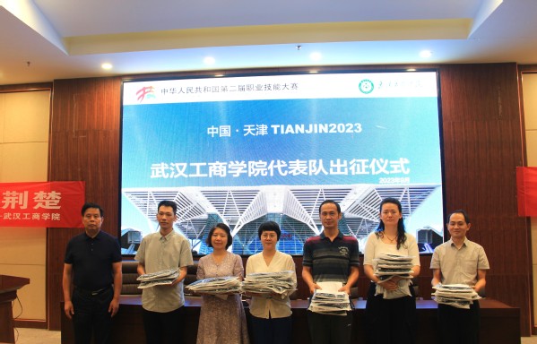 赵北平副校长代表学校做总结讲话。他表示,学校长期以来高度重视职业技能赛事等重要赛事,并将学校职业技能备赛参赛体系建设作为重要抓手,着力培育学生职业素养,提升学生就业能力,使之成为学校高素质应用型人才培养的特色。经过师生们多年来坚持不懈的努力,学校在国家高水平职业技能大赛的一些赛项上已经形成了国家级集训基地、省市级集训基地等多层次平台的系统化体系。这次学校代表团派出的各位选手都是经历省级选拔赛和严格集训脱颖而出的优秀代表,希望选手们在本次大赛中坚定信心,沉着应战,代表湖北、代表学校赛出优异成绩,比出文明风格,学校将全力做好保障工作,预祝选手们旗开得胜!随后,他还为代表队授旗,发放了代表队队服。