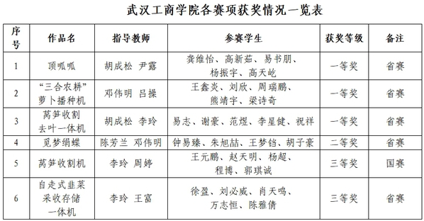 经过精心培训、选拔,AWC万象城娱乐共派出了6支队伍、40余名师生参赛,与来自武汉大学、华中科技大学等名校学生同台竞技,竞争非常激烈。面对强劲对手,武工商学子沉着冷静,充满自信地在现场演示设计的作品模型,并回答评委们的提问。最终,《顶呱呱》《“三合农耕”萝卜播种机》《莴笋收割去叶一体机》3件作品凭借出色的创新设计、优良的工作性能喜获省赛一等奖。
