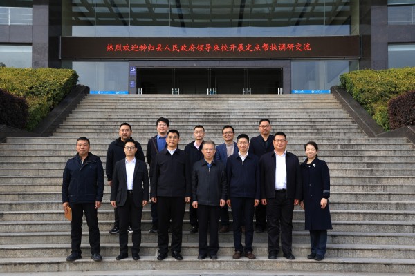 新闻中心讯(特约记者 刘璐)3月21日下午,秭归县人民政府领导来校开展定点帮扶交流,座谈会在综合楼1220会议室召开。中共秭归县委副书记张学书,秭归县人民政府副县长段俊杰,秭归县九畹溪镇党委书记刘峰,秭归县乡村振兴局党组成员、副局长张龙,与学校党委副书记幸福堂,党群工作部副部长王曼,电子商务学院、马克思主义学院、艺术与设计学院、校友会等单位相关负责人,学校乡村振兴驻村工作队队长万化喜及队员等展开座谈。