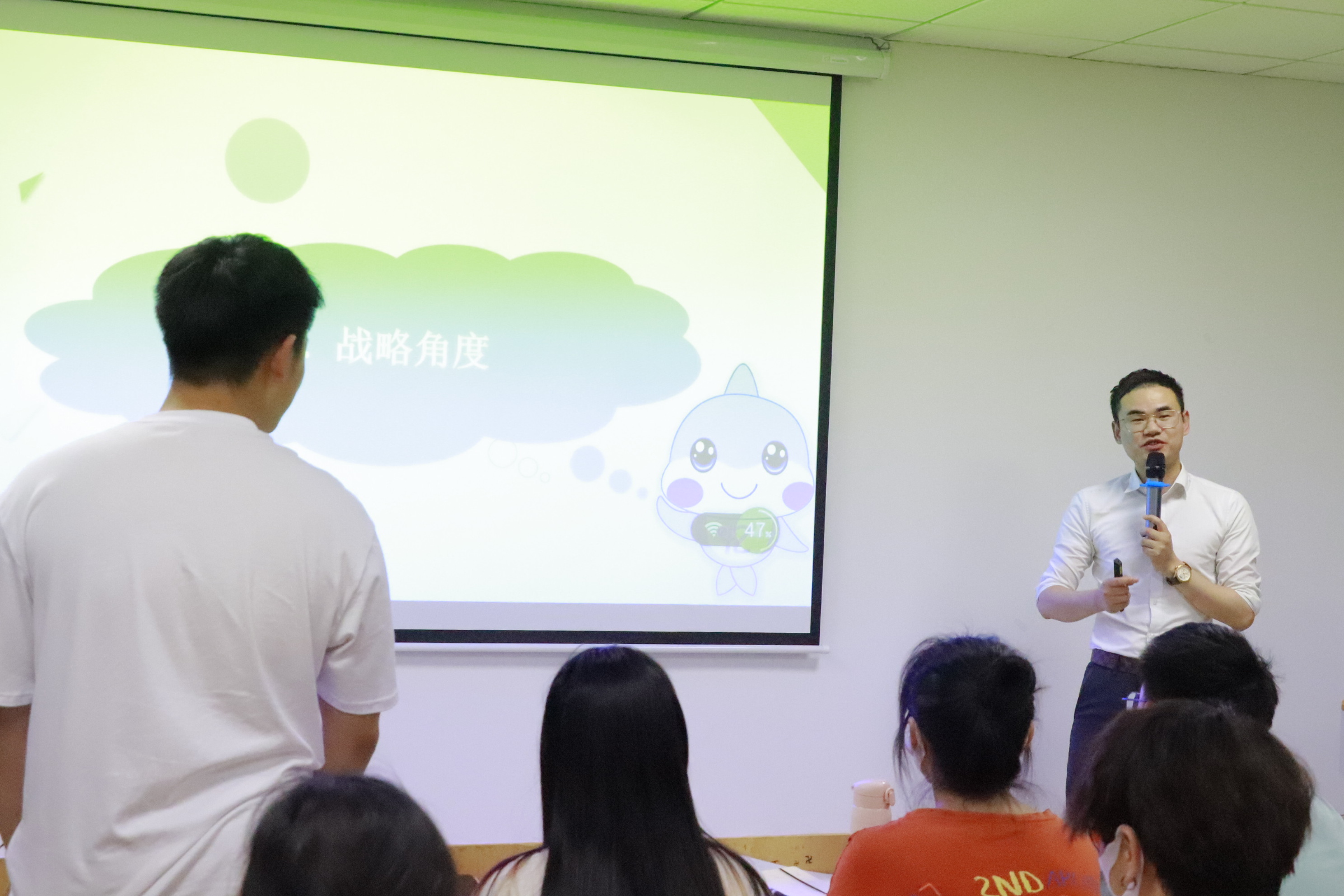 接下来是周锐老师就“大学生如何选择创业项目”展开讲述,周锐老师分别从战略、自身、外部三个维度分析了现阶段大学生应如何选择创业项目,并指出了平台对于大学生创业的重要性。