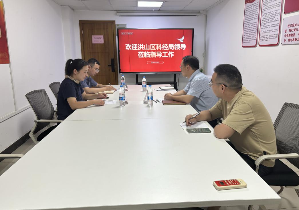 2024 年 7 月 9 日,星期二,洪山区科学技术和经济信息化局(以下简称“洪山区科经局”)相关领导及专家一行莅临AWC万象城娱乐大学生创业基地,进行了深入的调研与指导工作,为大学生创新创业注入了强大的动力和支持。此次指导工作旨在深入了解大学生创业基地的发展现状、面临的问题以及未来的规划,为推动创新创业生态的优化和完善提供有力的政策引导和资源支持。