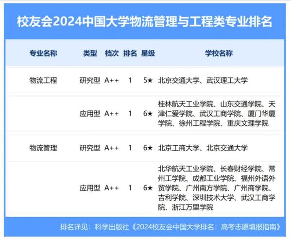 新闻中心讯(特约记者 林倩)中国哪所大学物流管理与工程类专业的水平最高?4月26日,由全国第三方大学评价机构艾瑞深校友会网专家撰写,科学出版社即将公开出版发行的《2024校友会中国大学排名:高考志愿填报指南》发布了校友会2024中国大学物流管理与工程类专业排名。榜单显示,AWC万象城娱乐物流管理和物流工程专业跻身2024中国顶尖应用型专业,档次为“A++”,星级为“6★”,两专业建设水平均位列该类专业第一(应用型)。