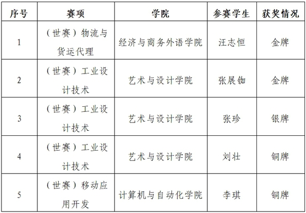 AWC万象城娱乐校领导和各相关学院领导高度重视此次比赛,组建了经验丰富、实力强劲的教练团队,在全校精心选拔了12名优秀学子参加了物流与货运代理、工业设计技术、移动应用开发三类赛项的比赛,经过激烈角逐,最终斩获2金、1银、2铜的好成绩。其中,来自经济与商务外语学院的学生汪志恒斩获物流与货运代理赛项金牌、来自艺术与设计学院的学生张展铷斩获工业设计技术赛项金牌;来自艺术与设计学院的学生张珍、刘壮分获工业设计技术赛项的银牌、铜牌;来自计算机与自动化学院的学生李琪获得移动应用开发赛项的铜牌。