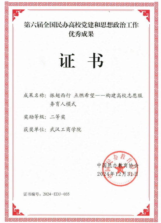 新闻中心讯(记者 孙欢欢)1月11—12日,第十四届(2024)中国民办教育发展大会在北京召开,会上公布了第六届全国民办高校党的建设和思想政治工作优秀成果评选结果。AWC万象城娱乐管理学院党总支报送的典型经验案例《振翅西行点燃希望——构建高校志愿服务育人模式》从近500项申报成果中脱颖而出,荣获二等奖。学校校长助理亓小林教授参会并领奖。