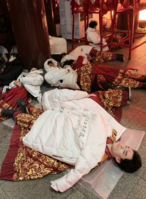 图为武工商学子在央视春晚武汉分会场主题节目《星汉耀江城》录制现场休息