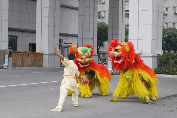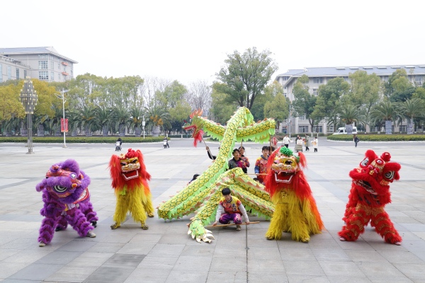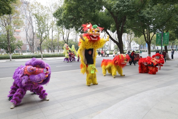 图为龙狮闹元宵巡游校园活动现场 摄影:芮雨欣