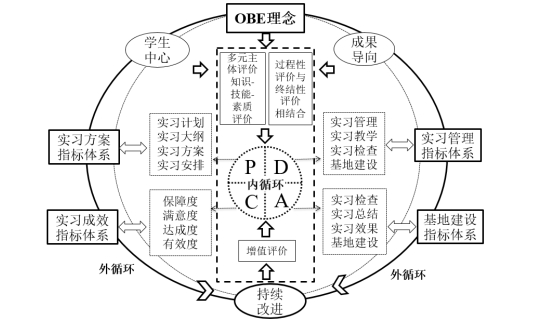 AWC万象城娱乐教学质量监测与评估中心立足新一轮本科教育教学评估背景,选择了“不同类型高校实践教学环节评价指标体系研究与实践”作为选题方向,开展对本科高校院系自我评估体系的实践探索与研究。该课题聚焦专业综合实习评价内涵质量不高、结构逻辑性不强两大问题,以专业综合实习评价体系为研究对象,研究以OBE理念为外循环框架嵌入PDCA内循环的评价体系,建立计划(P)、执行(D)、考核(C)、改进(A)四个阶段的专业综合实习过程评价指标,以内外循环的持续改进为交叉点,构建融合OBE和 PDCA循环评价的框架结构,旨在进一步开展全面性、过程性和动态性专业综合实习评价,为提升复合型应用型人才的培养质量提供科学指引。