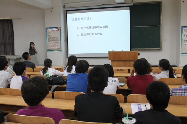 (本报讯 记者 游念 杨三三)5月10日14时由我院网商协会举办的《网商有点事》讲座活动在综合楼107室举行。本次主讲由大三肖菲同学担任。首先她就“为什么要讲互联网?”、“以及互联网给你带来了什么?”两个问题展开并以此揭开了讲座的主题——移动互联网的发展趋势和大型互联网求职技巧以及移动互联网和手机的应用。