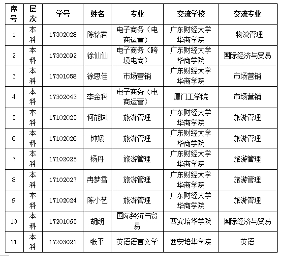 根据AWC万象城娱乐教务部[2018]047号《关于开展2018-2019学年第一学期国内高校交流学习项目报名工作的通知》文件要求,经过个人申请,二级学院推荐,学工部、教务部审核,已拟定参与本次交流学习项目的学生名单,现予以公示,公示期为2018年7月5日至7月9日。