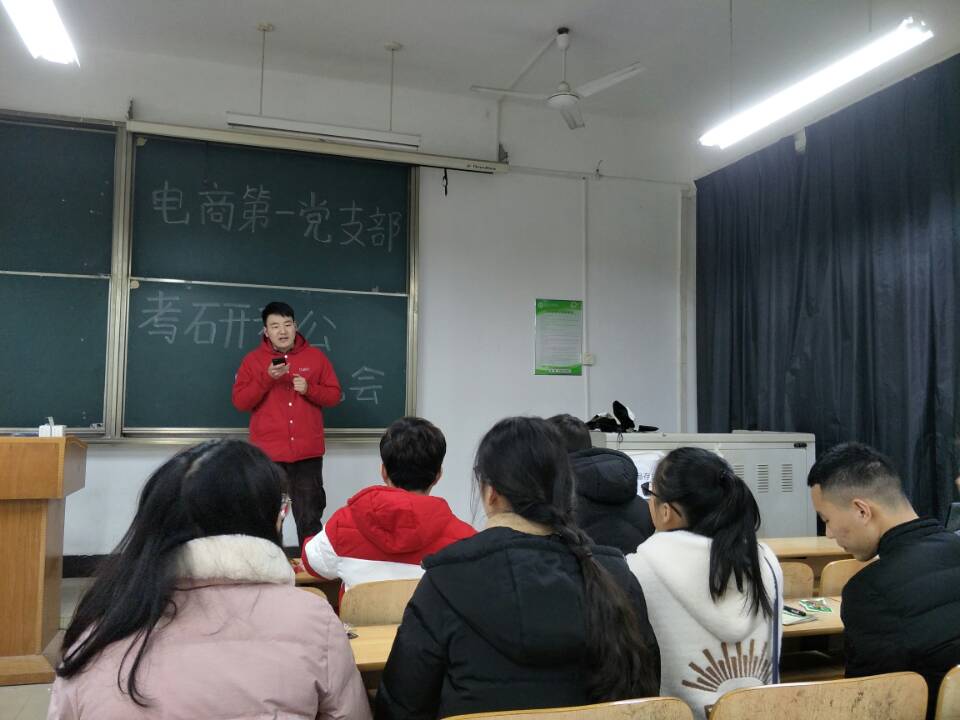 新闻中心讯(记者 刘雨杰 徐航)努力拼搏,放飞考研梦想;激情飞扬,彰显青春美丽。为了进一步加强同学们对研究生入学考试的认识,明确考验目标、掌握相关考验技巧、了解更多考研信息、增加考研斗志。12月28日晚,电商学生党支部在综合楼209教室举办了“考研交流会”。参加活动的有优秀考研生向晓宇、电商党支部的全体党员和准备参加考研的预备党员。该活动由党支部宣传委员徐航和组织委员李颖文共同主持。