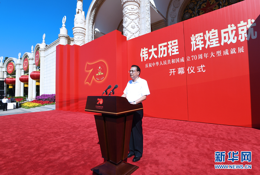 9月23日,“伟大历程 辉煌成就——庆祝中华人民共和国成立70周年大型成就展”开幕式在北京展览馆举行。中共中央政治局常委、国务院总理李克强出席开幕式并讲话。 新华社记者 饶爱民 摄