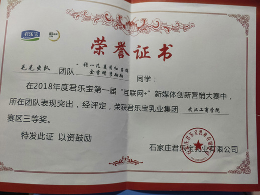 2018年11月 君乐宝“互联网+”新媒体创新营销比赛三等奖