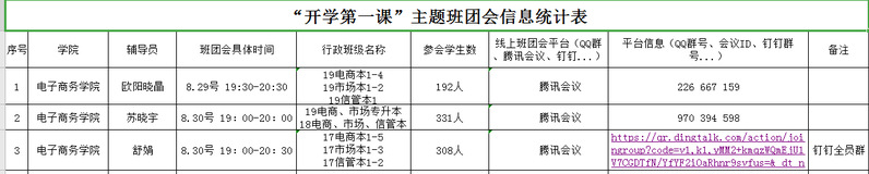 为贯彻落实上级关于新冠肺炎疫情防控的决策部署,高标准做好学生返校疫情防控工作,保障学生生命安全和身体健康,同时引导学生创建绿色校园,电商学院按照学校相关要求组织开展了2020年秋季学生返校“开学第一课”主题班团会,具体工作如下: