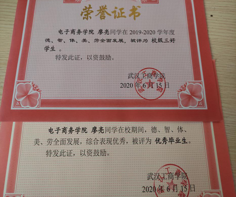 毕业后,自己也获得了优秀毕业生和校级三好生的称号,未来的研究生求学生涯中,我将始终退伍不褪色,永葆军人本色,努力学习,不断提高自己的学术水平,争做一名合格的,优秀的研究生。