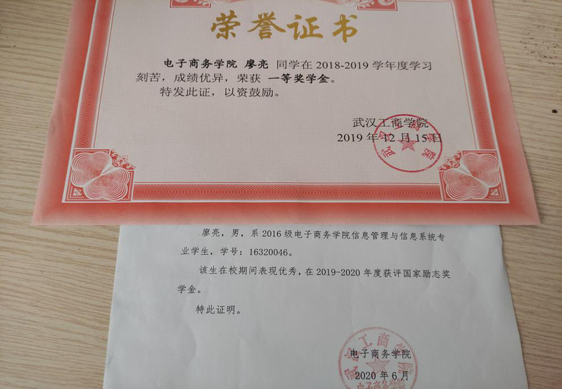 在学业上,我丝毫不敢放松,本科期间,最重要的就是自己的专业课,我本科信息管理与信息系统,对管理学和计算机编程都有着极高的要求,到了大三,由于自己的努力学习,自己的各科成绩优秀,专业排名第一,自己也非常荣幸的获得的一等奖学金和国家励志奖学金,这也更加的坚定了继续求学的信心。