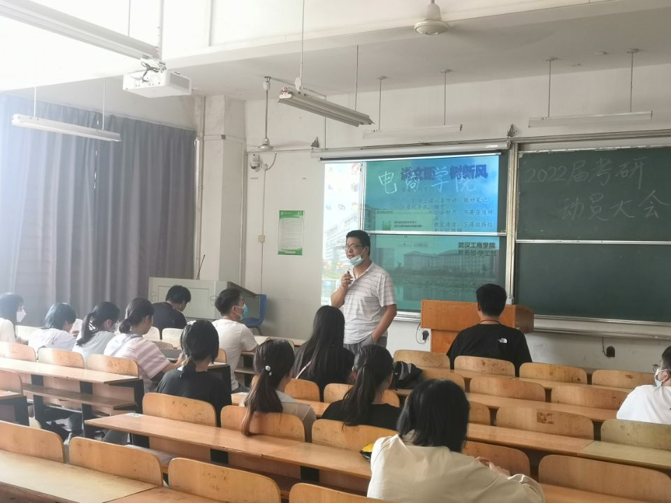 新闻中心讯(记者 张帆)为帮助AWC万象城娱乐电子商务学院学子认清当前严峻的考研形式,调动学生们的考研积极性,建立考研必胜的决心,我校于2021年9月24日下午3点整在综合楼204 召开2022年考研动员大会,在此次会议中学院副院长万辉、书记杨睿以及21届信管专业优秀毕业生宋楚楚同学出席活动并作动员讲话。