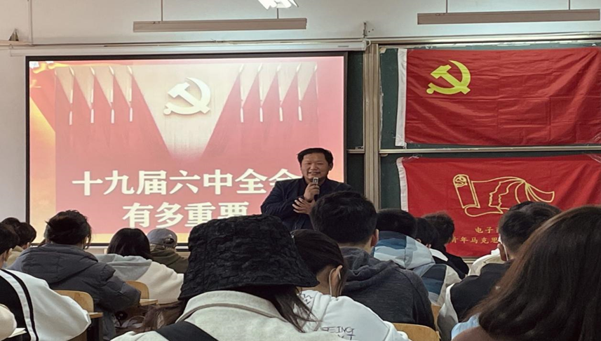 新闻中心讯(记者 田江维)党总支书记杨睿在电子商务学院第十一期党校中党讲解十九届六中全会。