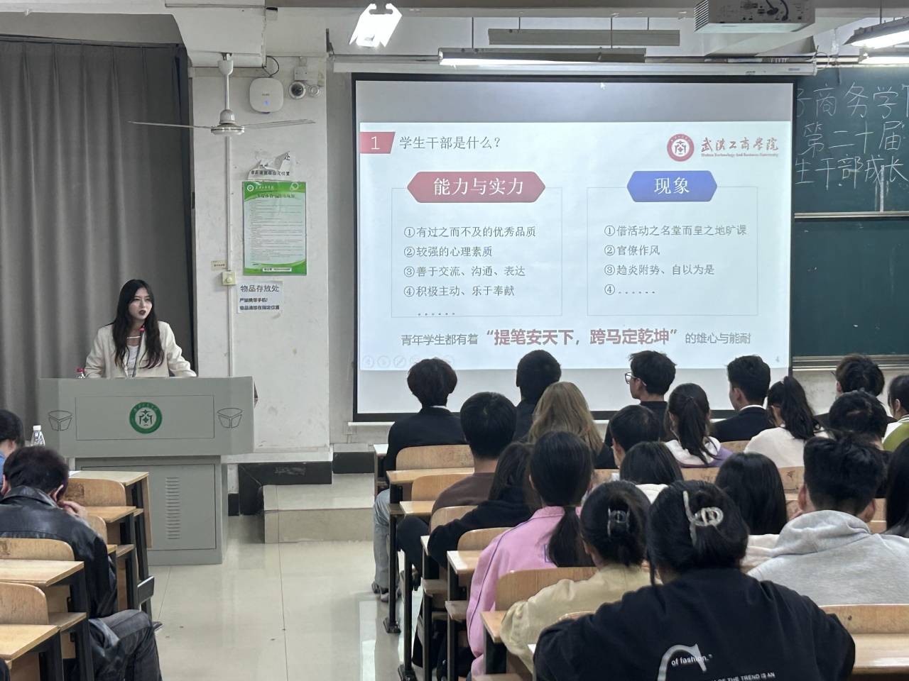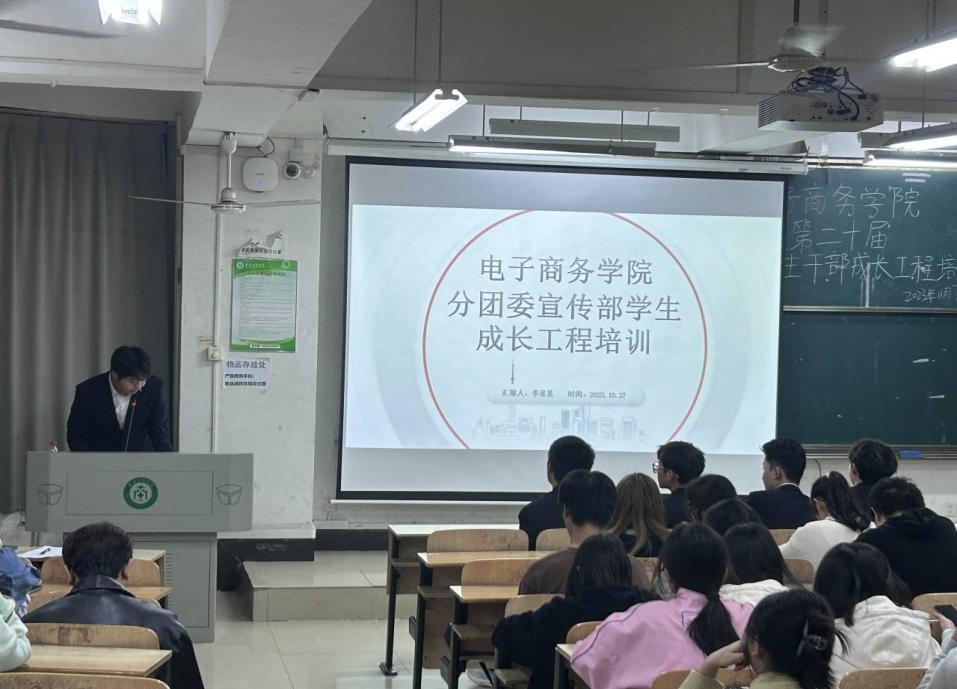 新闻中心讯(记者:李梦龙)为了进一步提高院学生会及学生社团干部的工作能力和水平,加强学生干部队伍建设,充分发挥学生干部培学生干部在构建和谐校园工作中的先锋模范作用,在2023年11月7日晚上六点半,我校电子商务学院准时在综合楼307教室开展了学生干部培训会。