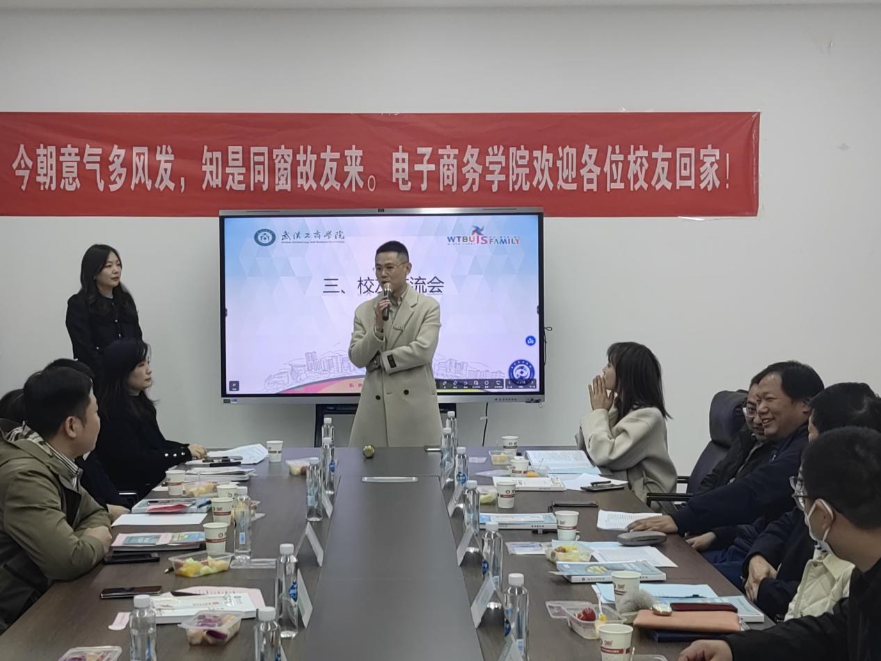 新闻中心讯(记者:鲁文豪 摄影:李星昊)光阴荏苒风华在,学子情深返校园。我院于12月2日11点在学院225会议室举办校友返校活动,共忆青春岁月,共叙师生情怀,共谋美好未来。电子商务学院院长王学东、常务副院长魏华、副院长万辉、党总支书记杨睿、校友会代表、在校师生代表和来自各地近30名校友出席校友返校日系列活动。