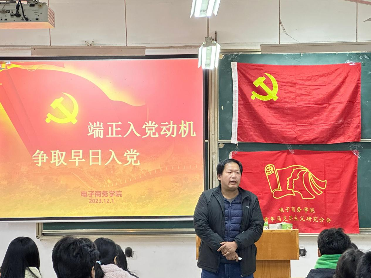 电子商务学院青年马克思研究分会讯(记者:贺欣妤,摄影:贺欣妤) 12月1日中午12:30,电子商务学院在线上开展第十五期党校,学院党总书记杨睿老师主讲。