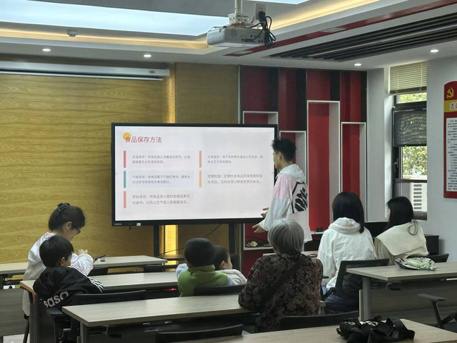 食品安全科普宣传方面,志愿者从食品安全的重要性方面着手,层层递进,分享了食品安全的基本原则,领导张家湾社区群众了解到了食品安全的风险,同时以现实案例警醒张家湾社区群众注重食品安全,并分享了食品选购技巧以及食品保存方法。