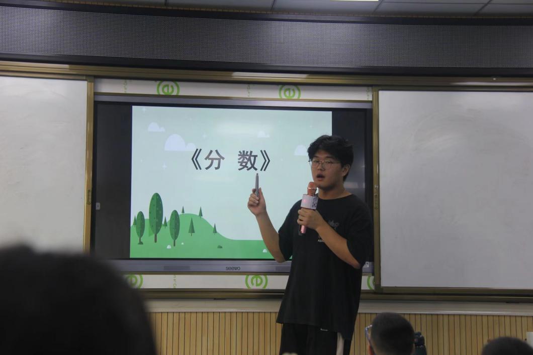 图为志愿者为同学们讲解分数 摄影:陈坤壕