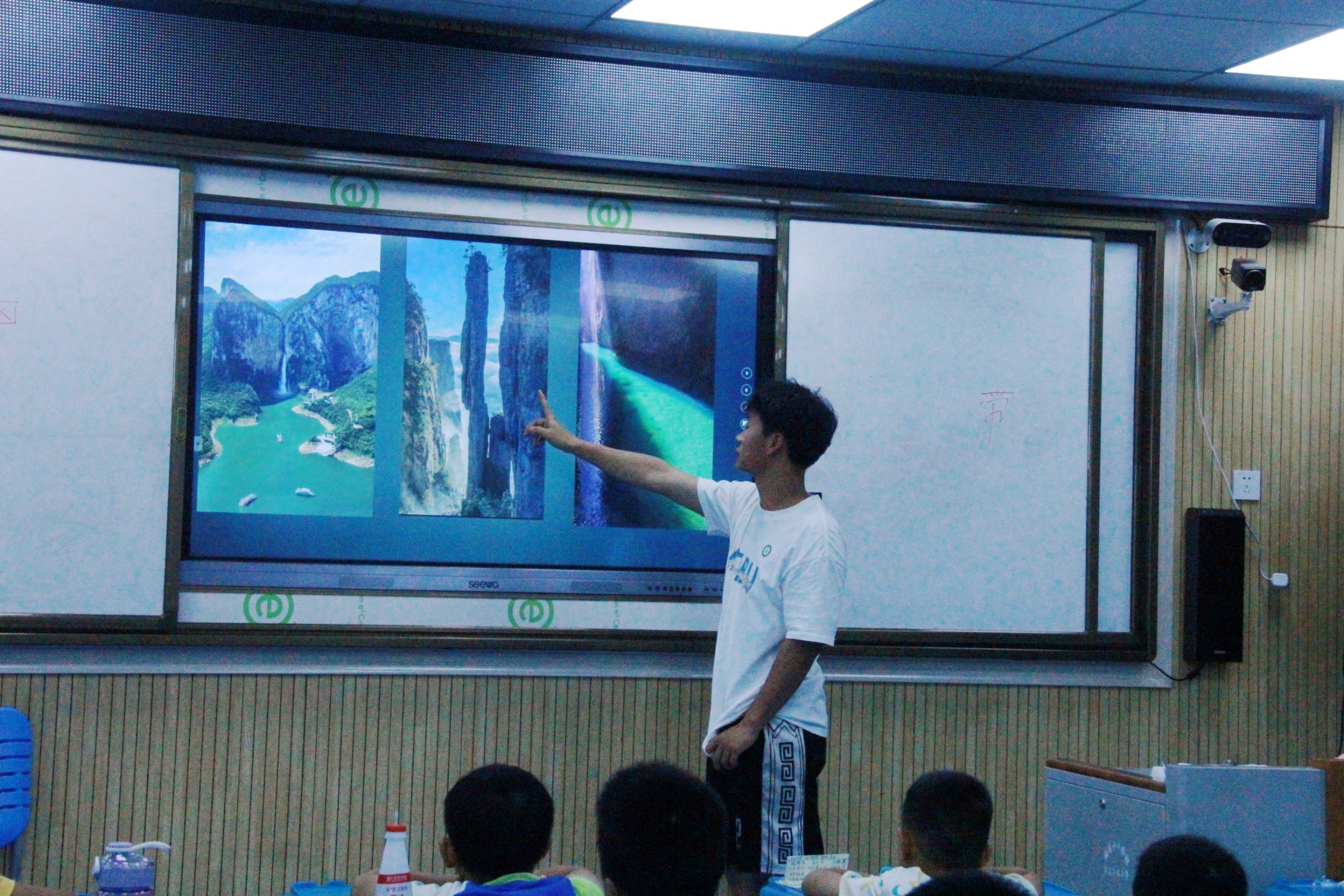 图为志愿者为同学们介绍恩施的独特美景 摄影:陈坤壕