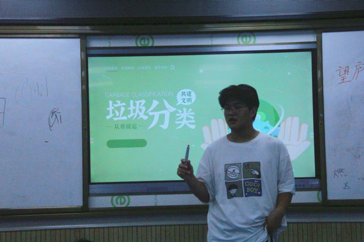 图为志愿者为同学们介绍垃圾处理流程 摄影:王敏惠