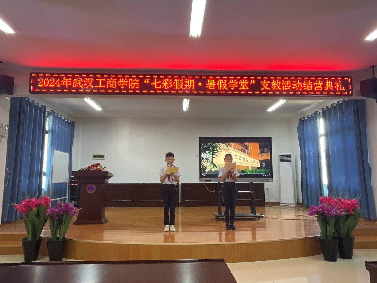 最后,文艺汇演环节将结营典礼推向了高潮。A班同学带来的手势舞《小美满》充满活力,展现了同学们积极向上的精神风貌;B班同学的朗诵《中华少年》慷慨激昂,表达了他们对祖国的热爱和对未来的憧憬;合唱《稻香》则将同学们对家乡的眷恋和对美好生活的向往娓娓道来。精彩的表演赢得了现场阵阵掌声,也将本次“七彩假期·暑假学堂”活动推向了高潮。