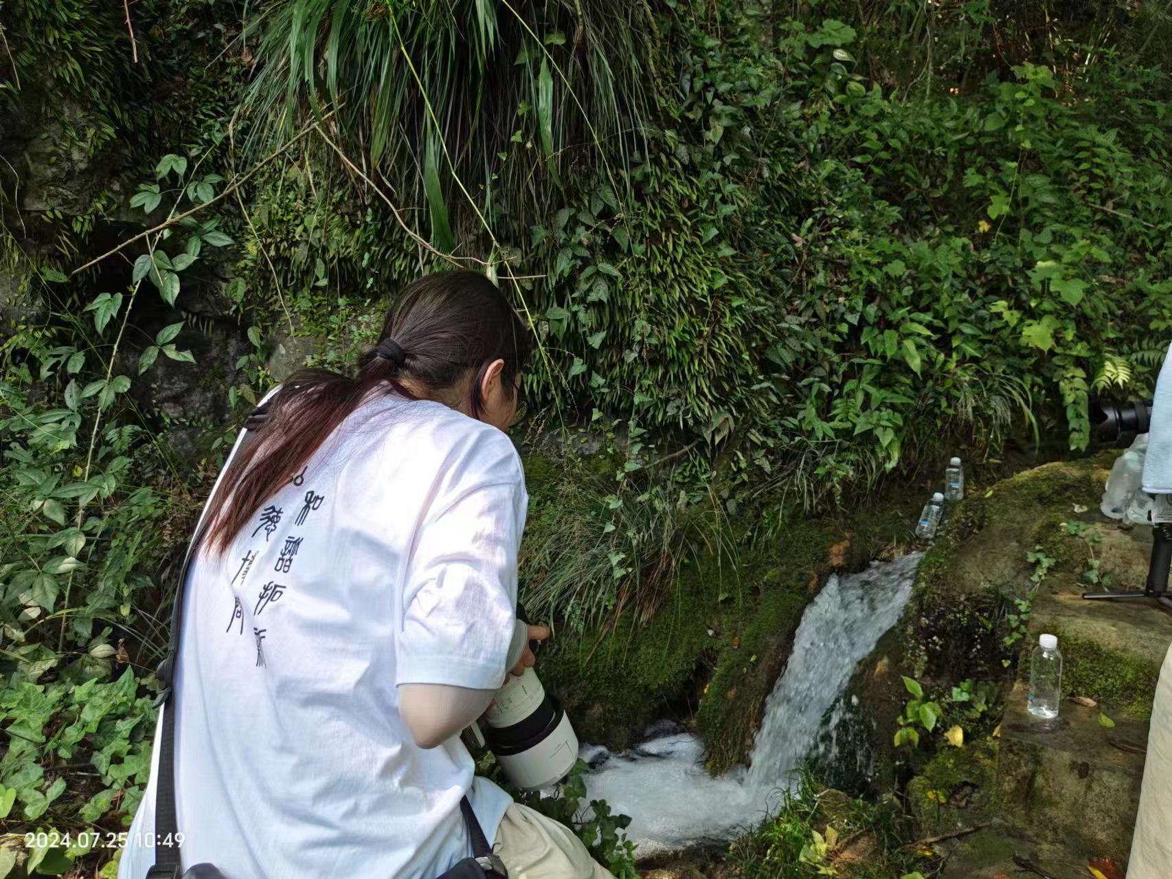 图为该矿泉水企业负责人为实践队讲解取水地 摄影:赵加敏