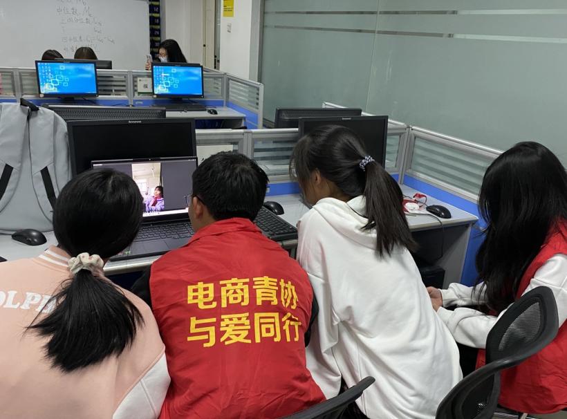 图为许依平(左一)参加远程支教 摄影:赵加敏