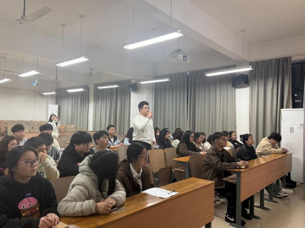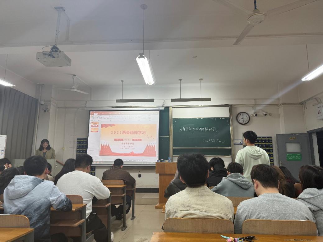在交流互动环节,党员们结合自身专业和实际情况,分享学习感悟。许本增同学表示:此次两会聚焦经济、科技、民生等核心议题,擘画国家前行路径,传递发展强音,令他深受触动。经济领域,我国锚定GDP增长目标,实施积极宏观政策,推动经济回升向好。科技创新层面,强调深入实施科教兴国战略,提升创新体系效能,促进科技与产业深度融合,为新质生产力发展注入活力。民生保障上,围绕就业、教育、医疗、养老等问题积极施策,彰显“以人民为中心”的发展理念。身为大学生,他深感时代赋予的使命。表示会努力学习专业知识,提升创新实践能力,投身科研,为解决“卡脖子”技术难题出力;积极参与社会实践,关注民生,以实际行动助力乡村振兴;增强社会责任感,传播正能量,引领身边同学共同进步。黄世明同学关注到两会中关于乡村振兴的内容,他说:“乡村振兴战略为我们提供了广阔的舞台。我计划利用假期参加乡村支教和调研活动,为乡村教育和产业发展出谋划策。”其他党员也纷纷发言,围绕就业创业、生态环保、文化传承等话题展开热烈讨论,现场气氛十分活跃。