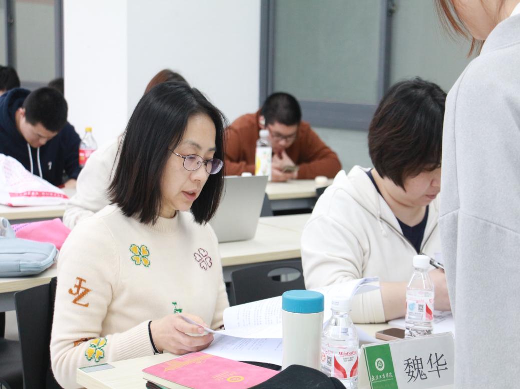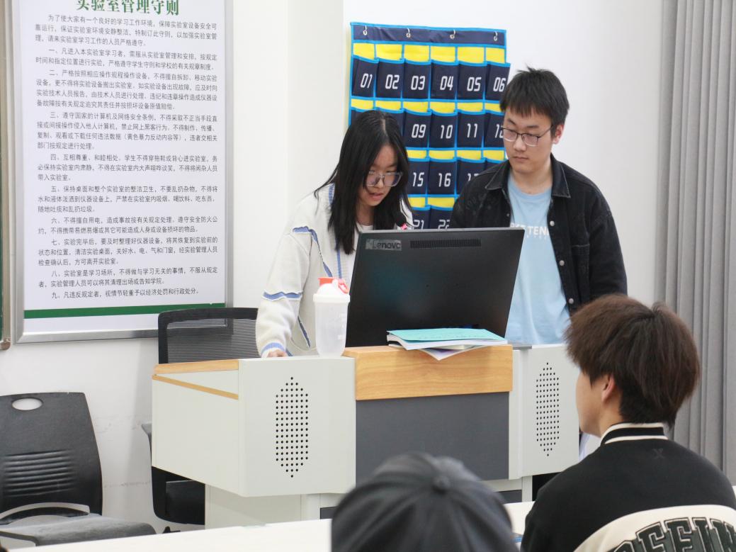 图为评委老师们浏览选手作品报告 摄影:许本增